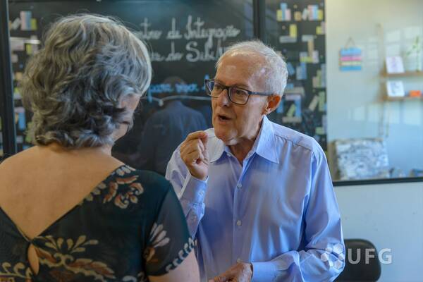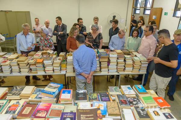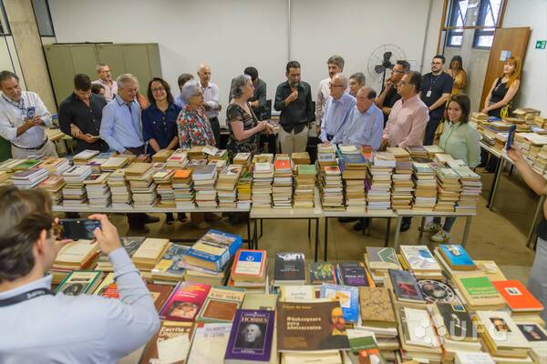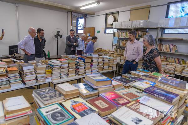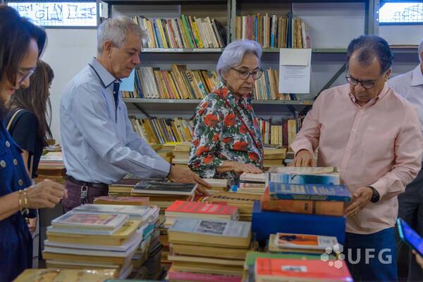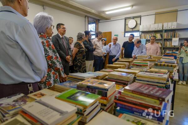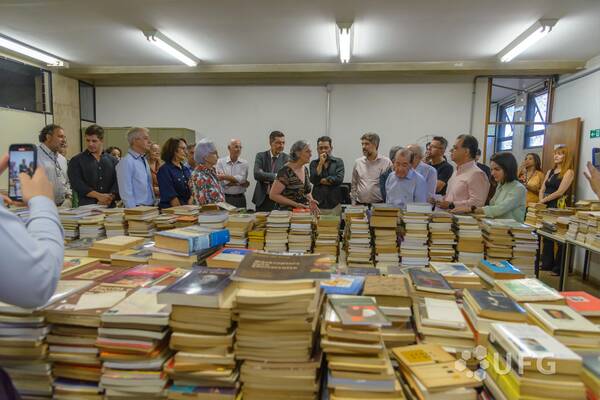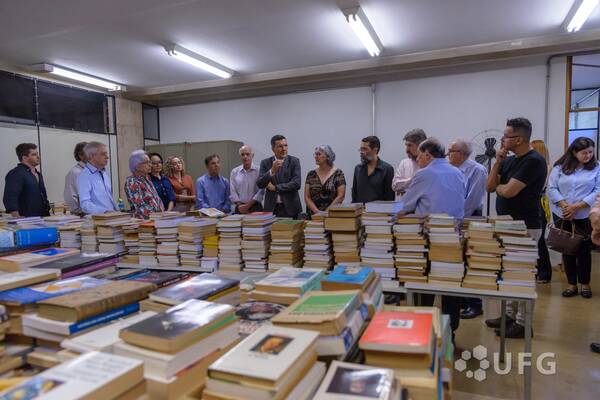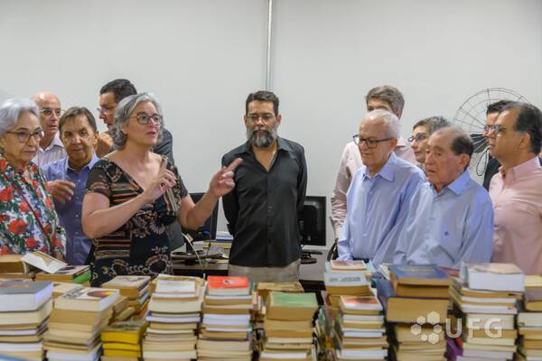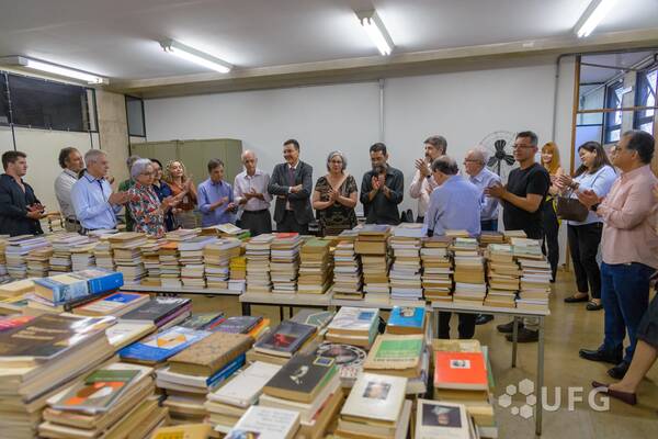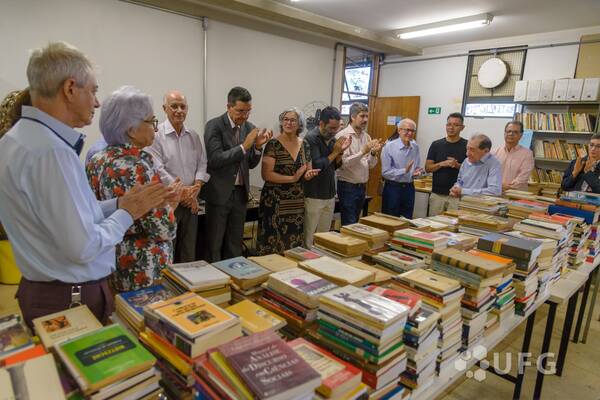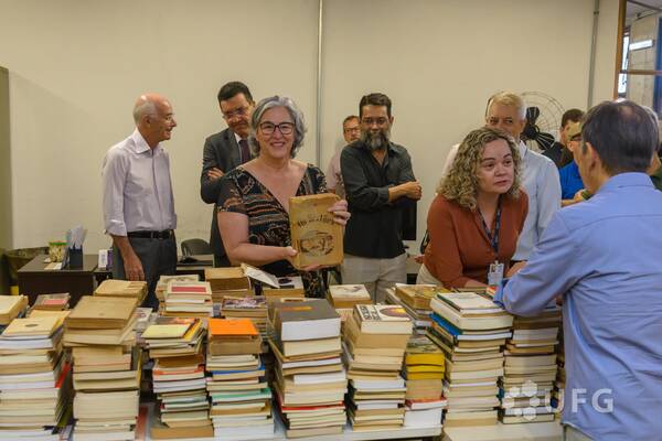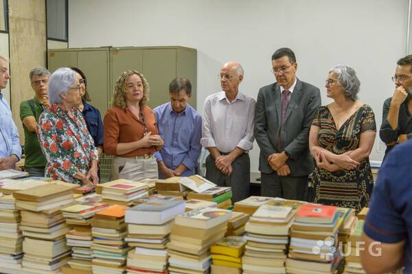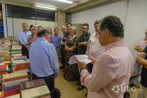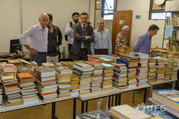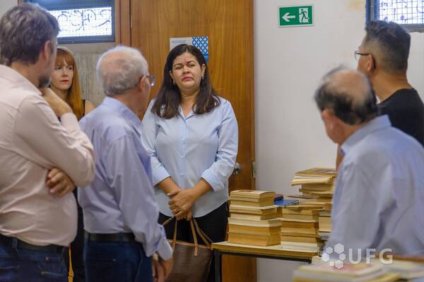 Na quarta-feira (3/9), a reitora Angelita Pereira de Lima esteve na Biblioteca Central da UFG para receber o acervo de livros que pertenceu ao ex-reitor e professor Joel Pimentel Ulhôa. Joel foi professor de Filosofia e reitor da Universidade Federal de Go