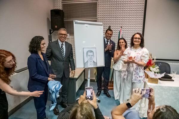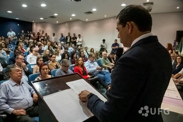 Cerimônia solene de posse da nova diretoria da Escola de Agronomia da UFG. A nova gestão para mandato de 2026 a 2030 é formada pela vice-diretora Francine Neves Kalil e pelo diretor Cláudio Fernando Cardoso. A cerimônia foi realizada no dia 4 de fevereiro