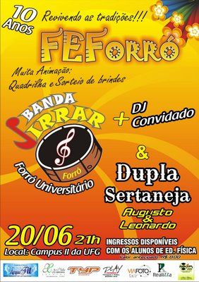 Festa Junina da Faculdade de Educação Física comemora 10 anos Event Local: Faculdade de Educação Física Event period : June 19, 2008 at 21:00 - November 01, 2013 at 12:40 TweetWhatsApp List all Back