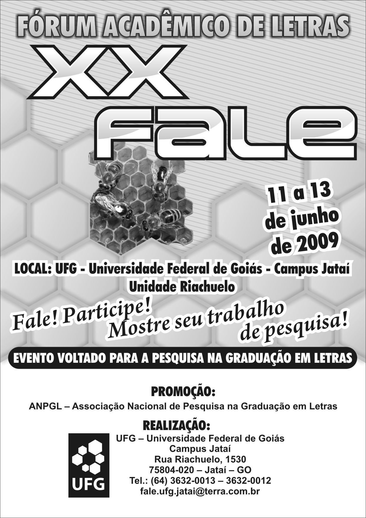 XX Fale - Fórum Acadêmico de Letras Evento Local: Câmpus Jataí Período do Evento : 10 a 12 de Junho 2009 TweetWhatsApp Listar Todas Voltar