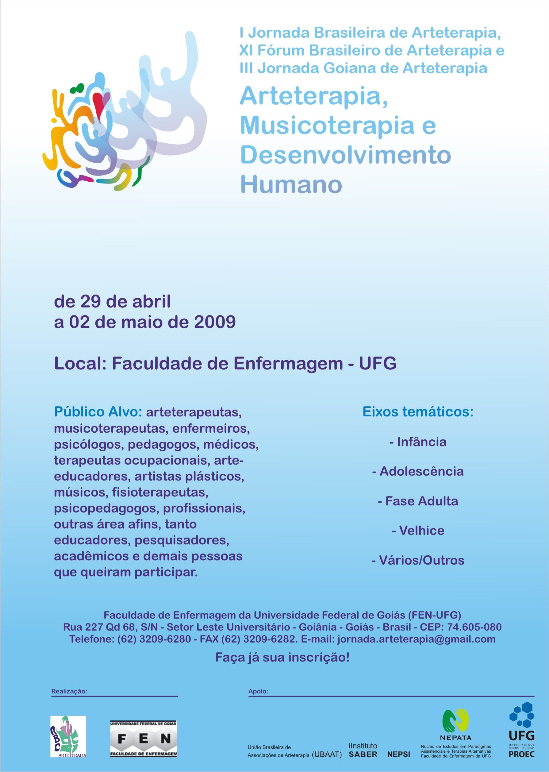 De 29 a 2 de maio a Faculdade de Enfermagem (FEN) receberá, em parceria com a Associação Central de Arteterapia (ABCA), a I Jornada Brasileira de Arteterapia,  o IX Fórum Brasileiro de Arteterapia e a III Jornada Goiana de Arteterapia com o tema "Arteterapia, Musicoterapia e desenvolvimento humano".