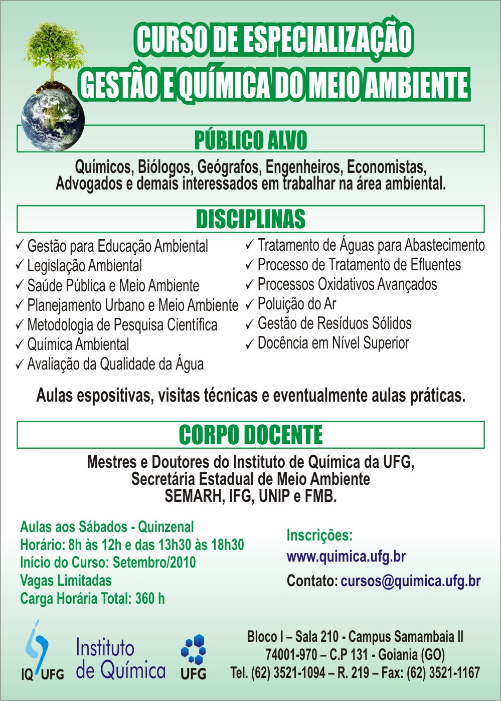 Curso de Especialização em Gestão e Química do Meio Ambiente