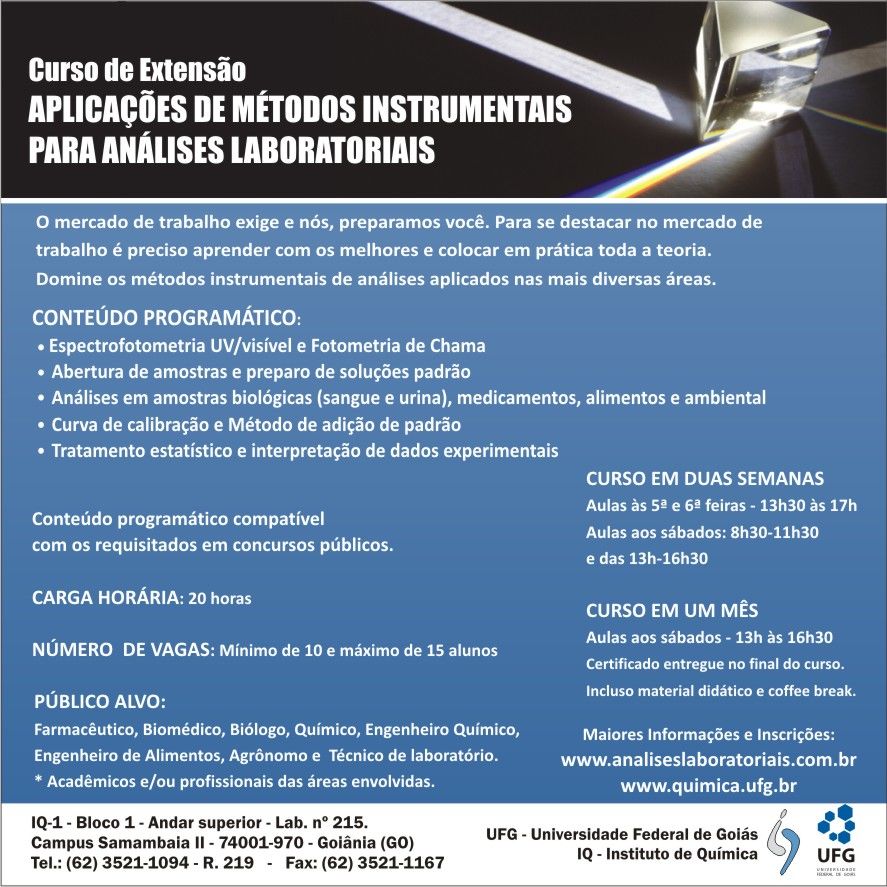 Curso de extensão em Aplicações de métodos instrumentais para análises laboratoriais