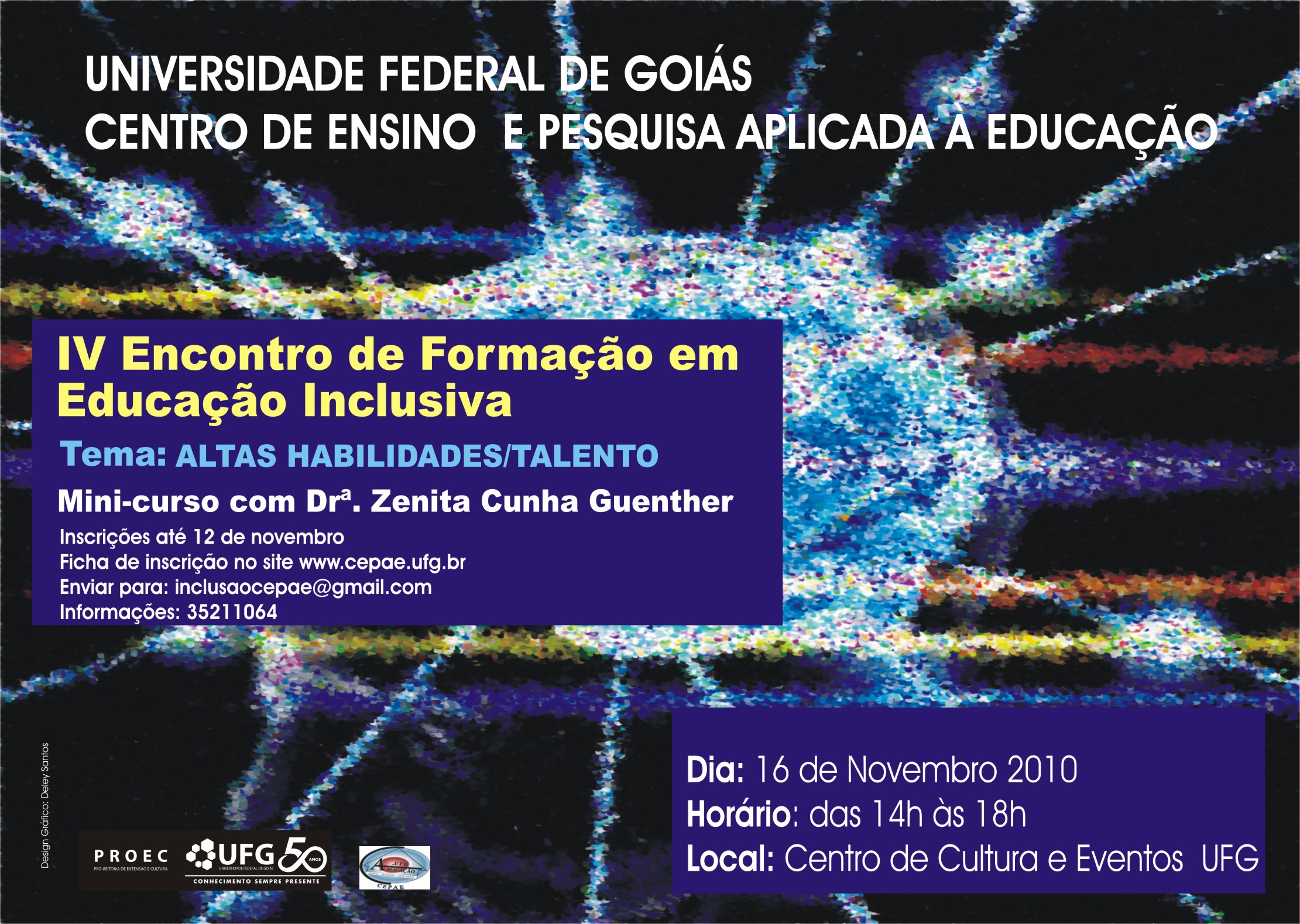 O evento é parte de um projeto de extensão promovido por professores do CEPAE, dentro do objetivo de Escola Inclusiva. O minicurso com a dra. Zenita Cunha Guenther, autoridade internacional no tema Educação de Crianças Dotadas e Talentosas (crianças com Altas Habilidades/Superdotadas é o termo usado em alguns meios, sendo considerado mais adequado), visa auxiliar os professores, licenciandos, pais e interessados a identificar crianças e adultos com esse perfil, propondo metodologias de apoio que possibilitem o alcance de ótimos níveis de aprendizagem desses portadores de necessidades educativas especiais. Leva-se em conta que, caso isso não aconteça, tais estudantes, que possuem características cognitivas diferentes, podem perder em rendimento, produção e desviar o talento para fins inadequados.
