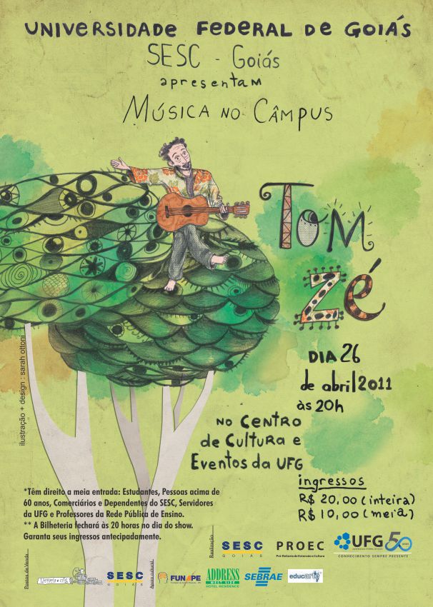 O projeto Música no Câmpus da UFG realiza mais uma edição no dia 26 de abril (terça-feira), às 20 horas, trazendo à Goiânia o artista Tom Zé. O show será no Centro de Cultura e Eventos Professor Ricardo Freua Bufáiçal e os ingressos já estão a venda nas livrarias da UFG e nas unidades do Sesc-Goiás.