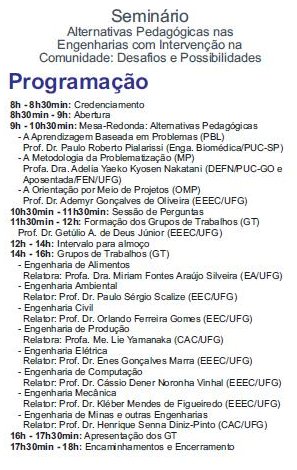 "Seminário Alternativas pedagógicas nas engenharias com intervenção na comunidade - desafios e possibilidades"