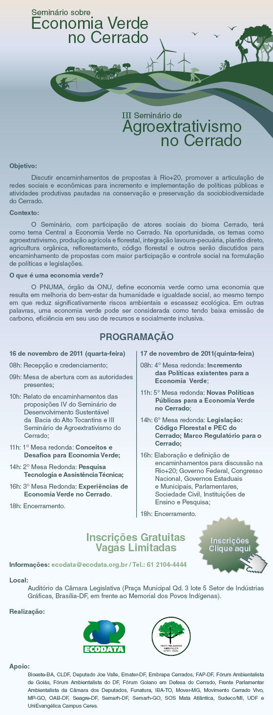 II Seminário de Agroextrativismo no Cerrado Event Local: Auditório da Câmara Legislativa (Brasília-DF) Event period : November 15 - 16, 2011 TweetWhatsApp List all Back