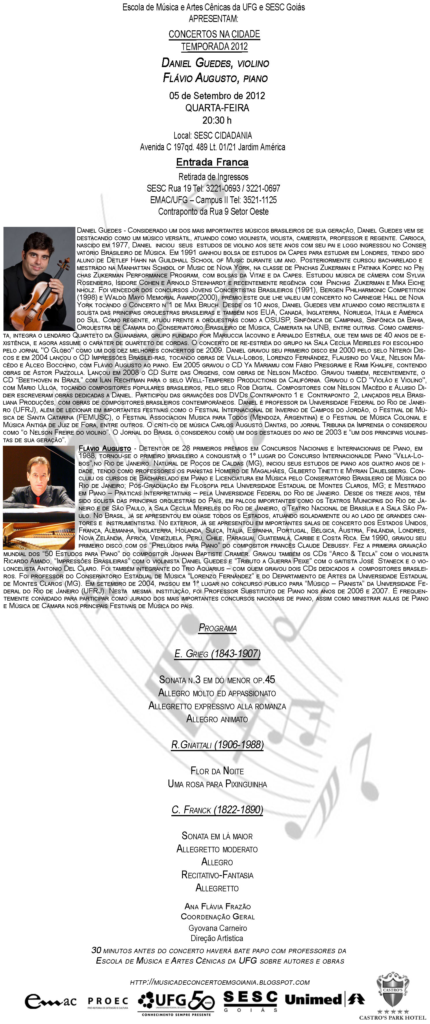Concertos na Cidade apresenta duo de violino e piano com Daniel Guedes (violino) e Flávio Augusto (piano)