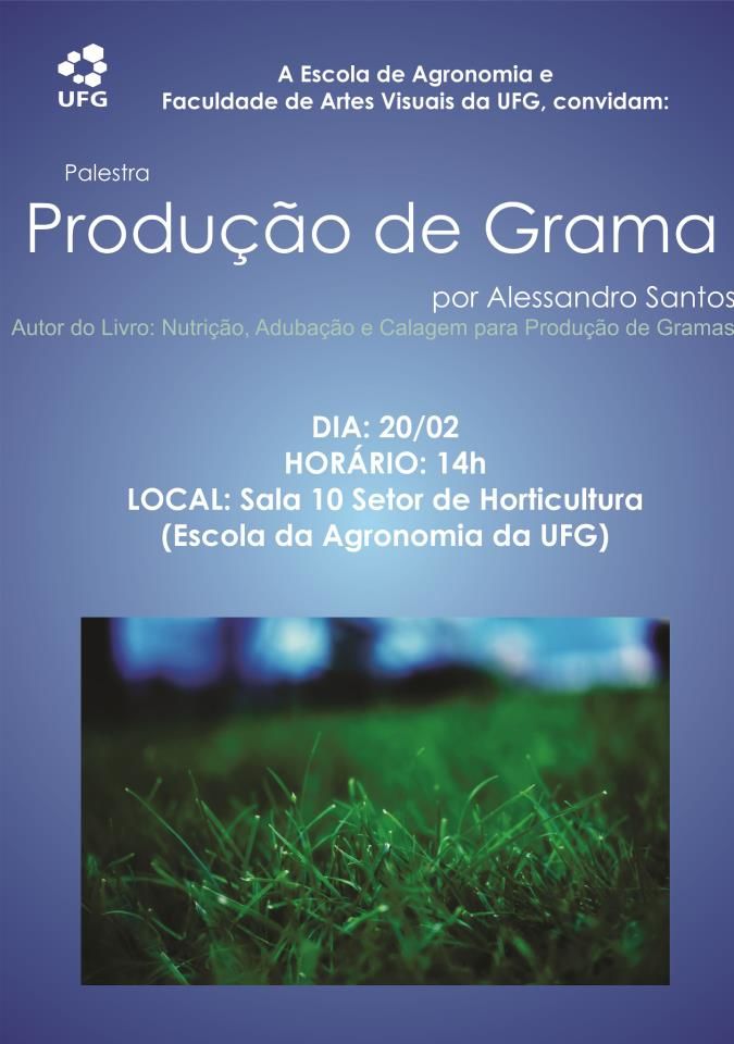 Escola de Agronomia e Faculdade de Artes Visuais convidam para palestra de produção de grama Evento Local: Escola de Agronomia Periodo evento : 19 febbraio 2013 alle 21:00 a 01 novembre 2013 alle 12:40 TweetWhatsApp Elenca tutto Volver