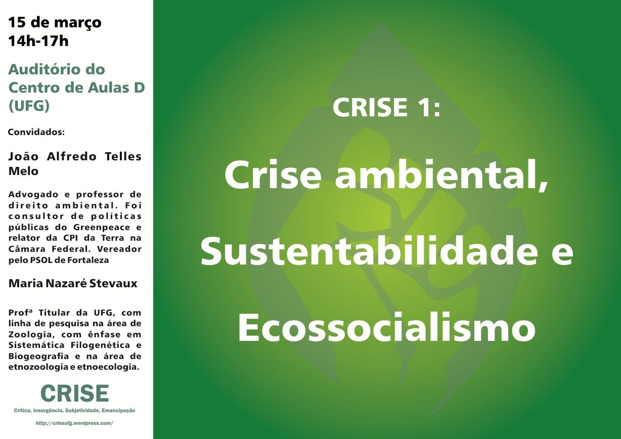 O Núcleo Crítica, Insurgência, Subjetividade e Emancipação (CRISE) realiza no dia 15 de março, às 14 horas, a palestra "Crise ambiental, sustentabilidade e ecossocialismo". O evento conta com a participação do advogado e professor de direito ambiental, João Alfredo Telles Melo, que já foi consultor de políticas públicas do Greenpeace, e da professora do Instituto de Ciências Socioambientais, Maria Nazaré Stevaux.
