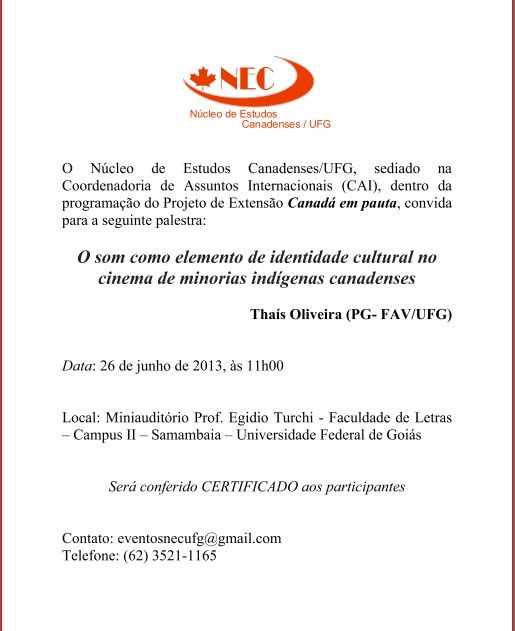Palestra: "O som como elemento de identidade cultural no cinema de minorias indígenas canadenses" Evento Local: Faculdade de Letras Periodo evento : 25 giugno 2013 alle 21:00 a 01 novembre 2013 alle 12:41 TweetWhatsApp Elenca tutto Volver