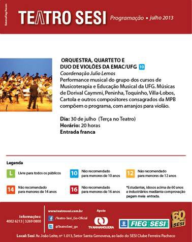 Orquestra, quarteto e duo de violões da Emac Evento Local: Teatro Sesi Periodo del Evento : 29 Julio 2013 a las 21:00 a 01 Noviembre 2013 a las 12:41 TweetWhatsApp Todas las páginas Volver