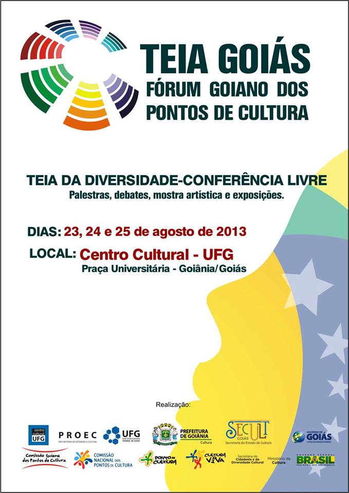 A cidade de Goiânia sedia o Fórum Goiano dos Pontos de Cultura – Teia Goiás de sexta, 23 de agosto, a domingo, 25 de agosto. O evento vai reunir os pontos do programa Cultura Viva, desenvolvido pelo Ministério da Cultura (MinC). A realização é uma parceria do MinC com a Secretaria de Estado da Cultura (Secult Goiás), Prefeitura de Goiânia, Comissão Nacional dos Pontos de Cultura (CNPdC) e Universidade Federal de Goiás (UFG).