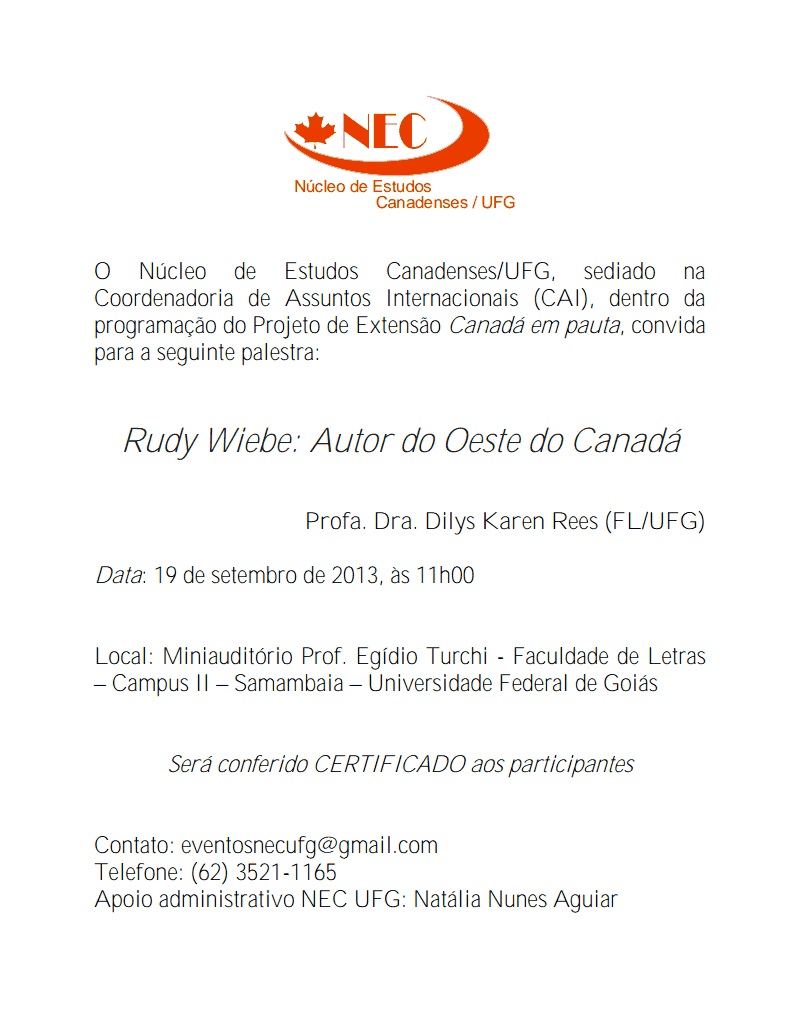 Canadá em Pauta apresenta Rudy Wiebe, Autor do Oeste do Canadá