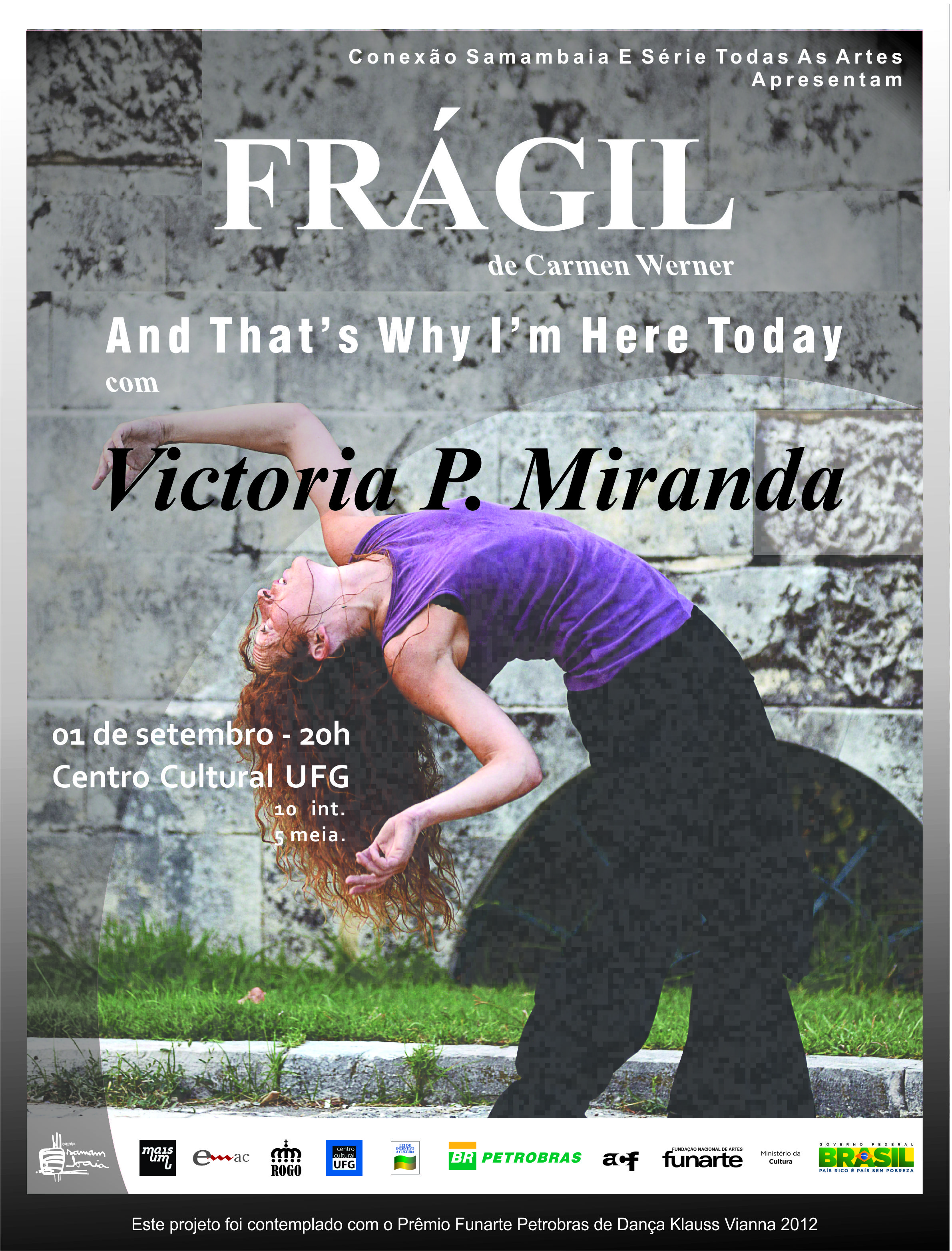 O Centro Cultural UFG apresenta FRÁGIL (de Carmen Werner) e AND THAT’S WHY I’M HERE TODAY, com Victória Perez Miranda, com coreografia de Carmen Werner, interpretação de Victória P. Miranda, música de Masahiro Hiramoto, desenho de luz de Daniel Abreu - Cia. Provisional Danza, subsidiada pela Comunidad de Madrid, circulação Ministério de Cultura.