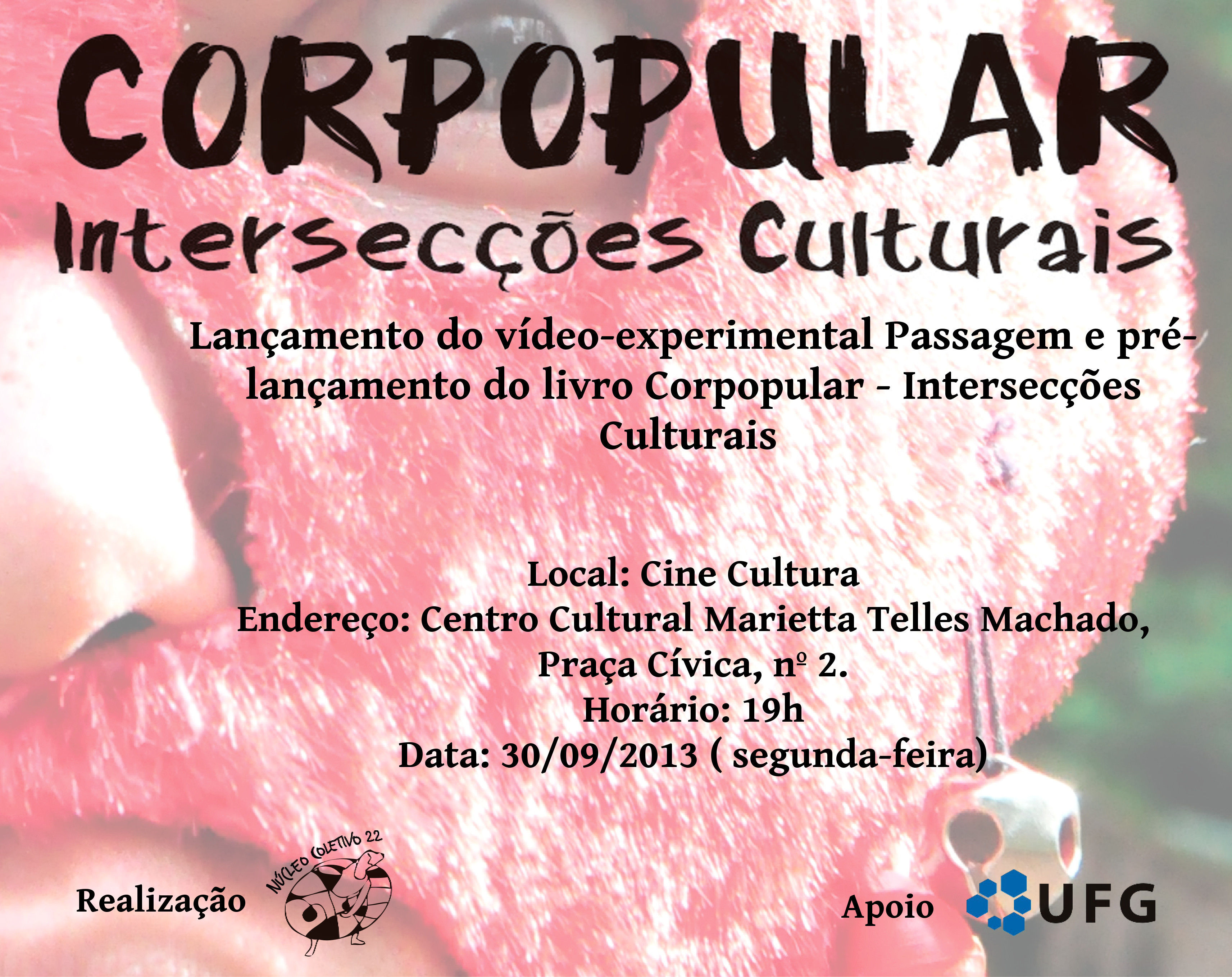 A faculdade de Educação Física convida para o lançamento do vídeo-experimental Passagem e pré-lançamento do livro "Corpopular - Intersecções Culturais". O livro e o vídeo são frutos dessa intensa e densa experiência que envolveu corpos e culturas populares. O evento será realizado no dia 30 de setembro, às 19 h, no Cine Cultura.