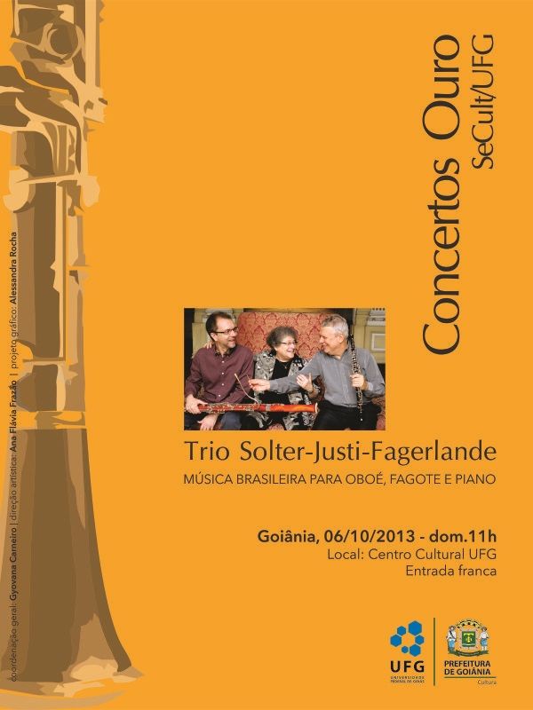 O Centro Cultural UFG receberá o recital do Trio Solter-Justi-Fagerlande, na série Concertos OURO, no próximo domingo, dia 06 de outubro, às 11h, com entrada gratuita.