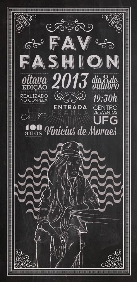 A Faculdade de Artes Visuais (FAV) realizará no dia 8 de outubro, durante o Conpeex, a oitava edição do FAV Fashion. O evento terá início às 19:30h e será realizado no Centro de Cultura e Eventos Professor Ricardo Freua Bufáiçal. A entrada é gratuita.