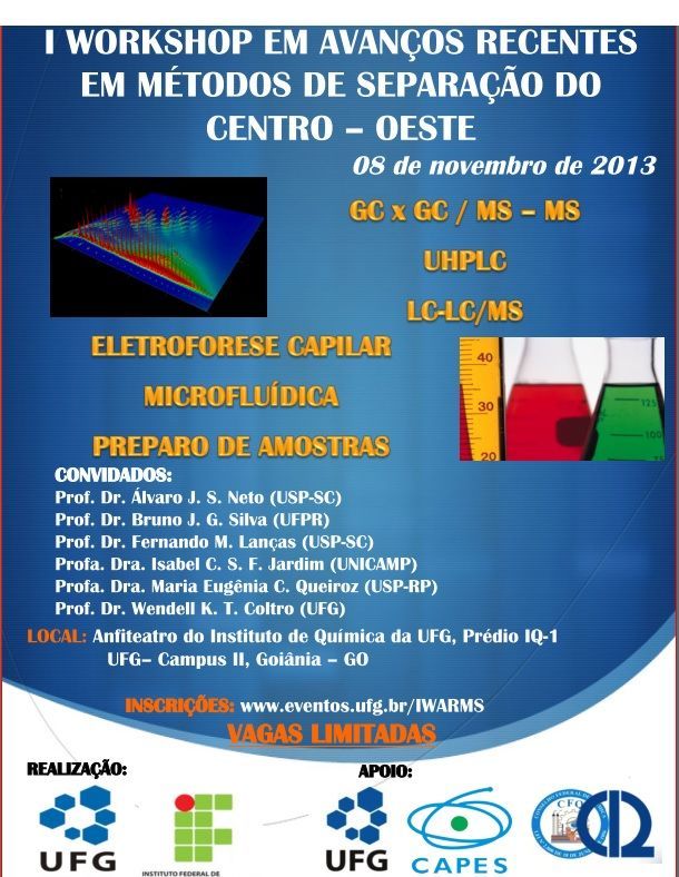 I Workshop em Avanços Recentes em Métodos de Separação do Centro-Oeste Evento Local: Anfiteatro do Instituto de Química/UFG Data do Evento : 08 de Novembro 2013 TweetWhatsApp Listar Todas Voltar
