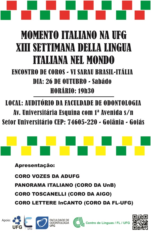 Sarau Brasil Itália Evento Local: Auditório da Faculdade de Odontologia Período do Evento : 25 de Outubro 2013 às 22:00 a 01 de Novembro 2013 às 12:41 TweetWhatsApp Listar Todas Voltar