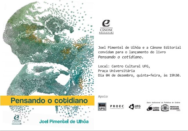 Lançamento do livro Pensando o Cotidiano de Joel Ulhôa Evento Local: Centro Cultural UFG Período do Evento : 03 a 04 de Dezembro 2014 TweetWhatsApp Listar Todas Voltar