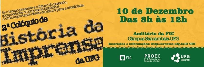 A Faculdade de Informação e Comunicação (FIC) da UFG realizará, na próxima quarta-feira, 10/12, das 8 às 12 horas, no auditório da Faculdade, o II Colóquio de História da Imprensa. O encontro reunirá pesquisadores e profissionais para debater a temática. Estão previstas também diversas apresentações de produções acadêmicas e científicas referentes à história da imprensa.