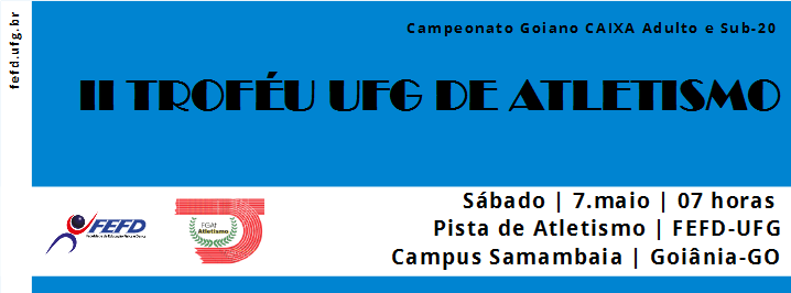 Neste sábado (7/5), às 7 horas, a Faculdade de Educação Física e Dança da UFG (FEFD) e a Federação Goiana de Atletismo realizam o II Troféu UFG de Atletismo. Na ocasião acontece também o Campeonato Goiano Adulto e Sub-20.