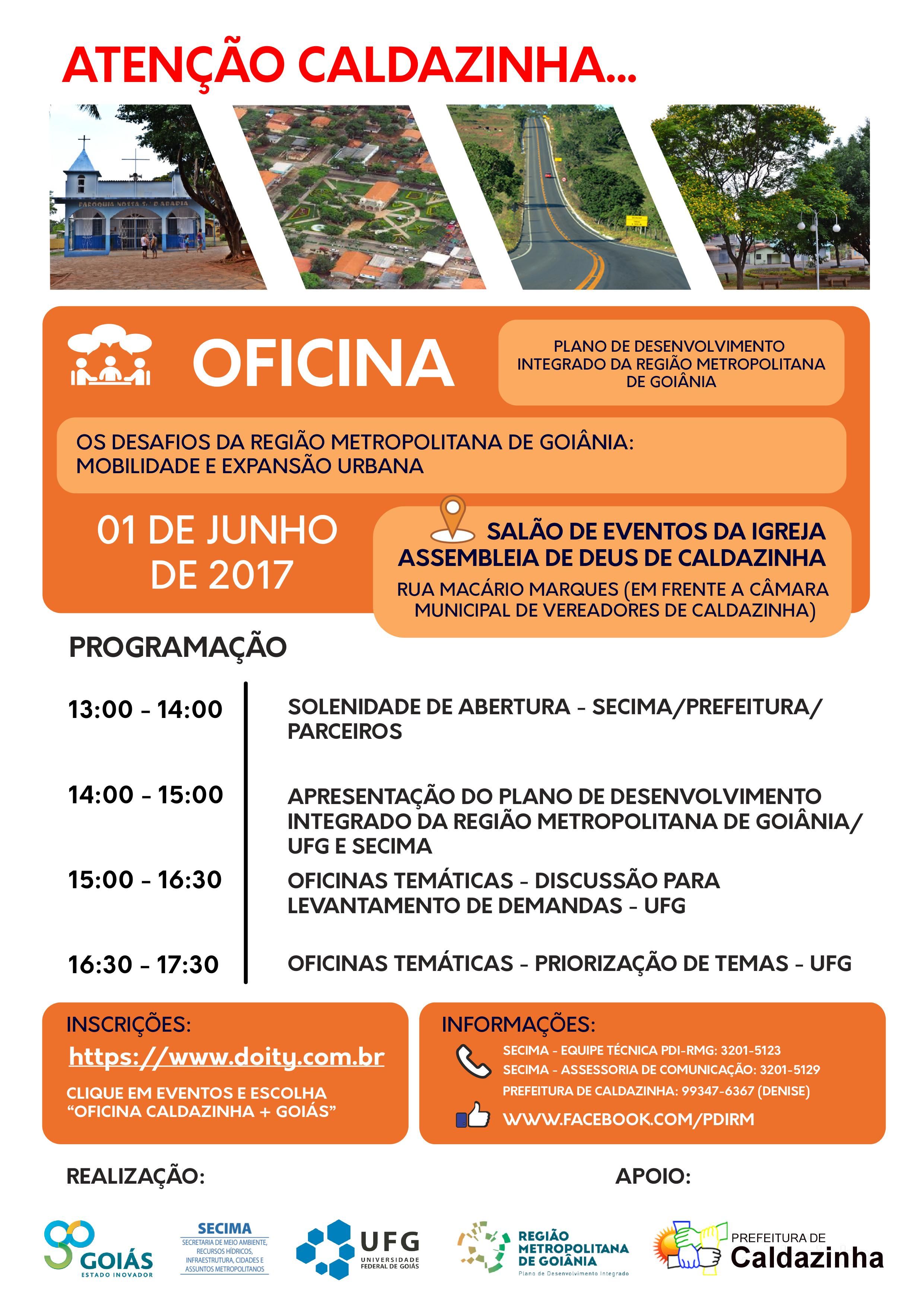 Mobilidade e expansão urbana serão assuntos em oficina no município de Caldazinha, para discutir desafios da região metropolitana.