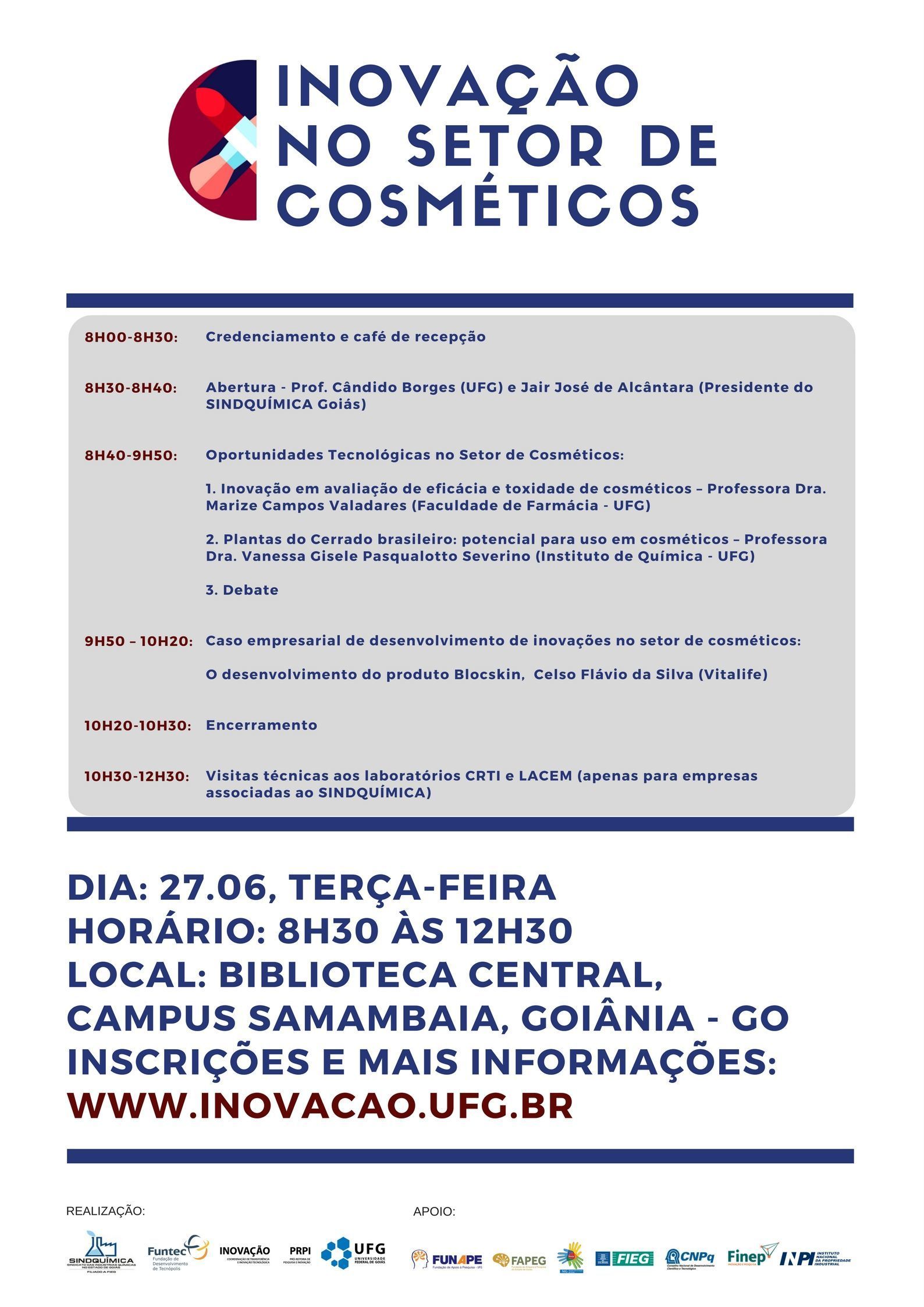 A Coordenação de Transferência e Inovação Tecnológica convida a todos para do Seminário Inovação no Setor de Cosméticos, evento que faz parte do Programa de Formação em Inovação. As inscrições são gratuitas e podem ser feitas pelo link. A inscrição prévia é pré-requisito para emissão de certificado.