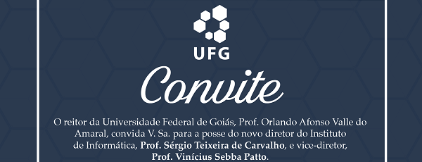 Será empossada nesta segunda-feira (26/6), às 14h, a nova diretoria do Instituto de Informática da Universidade Federal de Goiás (INF/UFG). Tomam posse os professores Sérgio Teixeira de Carvalho e Vinícius Sebba Patto, no cargo de diretor e vice, respectivamente. A cerimônia será realizada na sala 257 do INF, no Câmpus Samambaia.