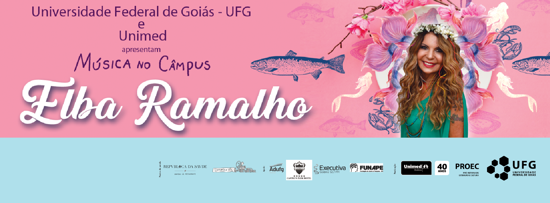 É com grande alegria que a Universidade Federal de Goiás e Unimed Goiânia apresentam o show de Elba Ramalho no Projeto Música no Câmpus,  no dia 05 de junho, as 20h30, no Centro de Cultura e Eventos Prof. Ricardo Freua Bufáiçal - Câmpus Samambaia.
