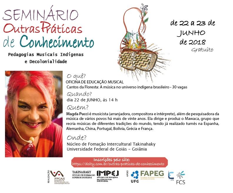 O primeiro seminário “Outras práticas de conhecimento” busca colocar em diálogo experiências pedagógicas musicais concretas das escolas indígenas dos povos Krahô e Apinajé, do Estado de Tocantins, e possibilitar o encontro de pesquisadores/as para refletir sobre as possibilidades da música no processo de ensino-aprendizagem.