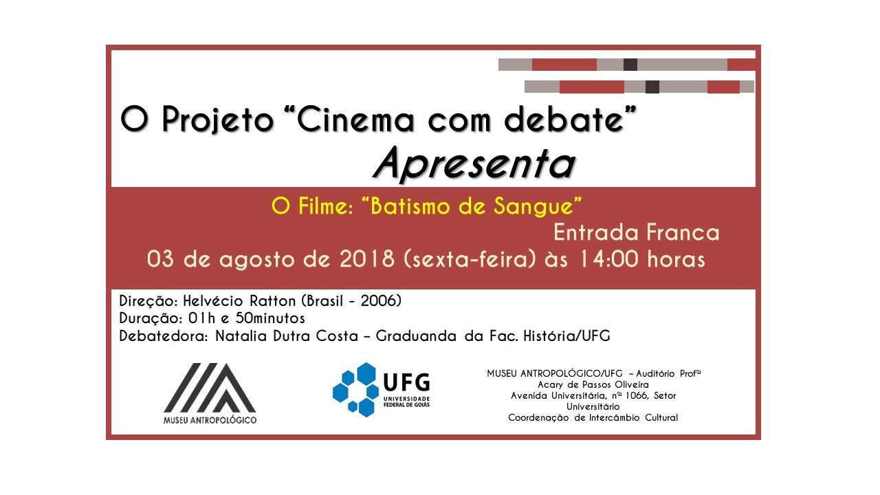 O Projeto “Cinema com Debate”, realizado no Museu Antropológico da Universidade Federal de Goiás (UFG), vai exibir o filme Batismo de Sangue nesta sexta-feira (3). A exibição começa às 14h e será seguida por um debate. A entrada é franca.