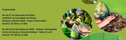 A Diretoria de Meio Ambiente da Secretaria de Infraestrutura da Universidade Federal de Goiás (Seinfra/UFG) promove o Treinamento em gestão de resíduos sólidos em meio ambiente urbano, rural e/ou com características rurais. A programação desta terça-feira (27/11) ocorrerá no auditório da Faculdade de Direito, na Praça Universitária, e a de quarta-feira (28/11), no Centro de Eventos Ricardo Fréua Bufáiçal, no Câmpus Samambaia.