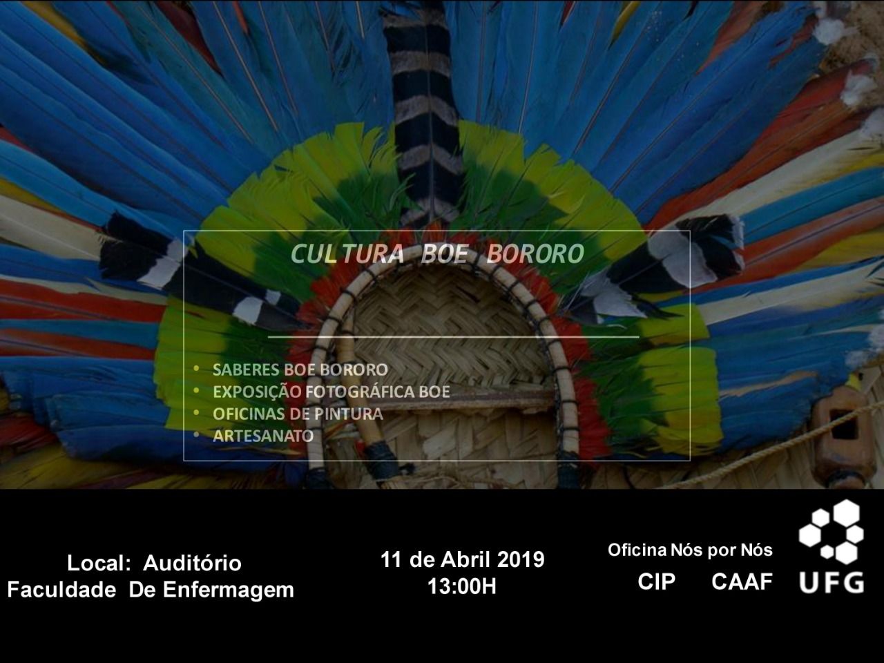 A Coordenação de Inclusão de Permanência/Prograd, convida toda a comunidade para participar da oficina "Nós por nós: cultura Boe Bororo". A atividade será realizada no auditório da Faculdade de Enfermagem no dia 11 de abril, a partir das 13h.