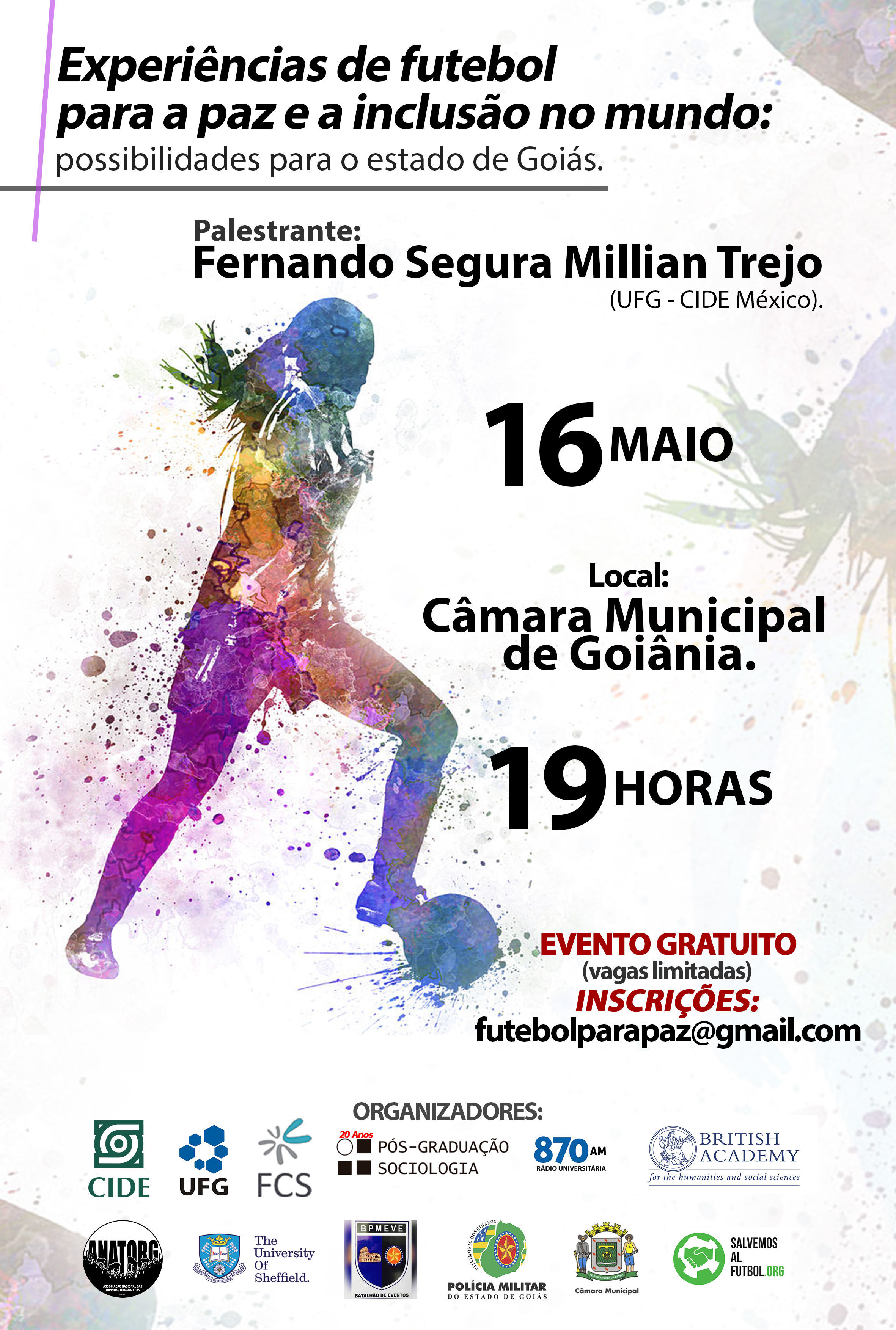 O Programa de Pós-graduação em Sociologia da UFG realiza no dia 16 de maio o seminário "Experiências de futebol para a paz e inclusão no mundo: Experiências para o Estado de Goiás". A atividade será realizada a partir das 19h  na Câmara Municipal de Goiânia e conta com o apoio da Rádio Universitária/UFG.