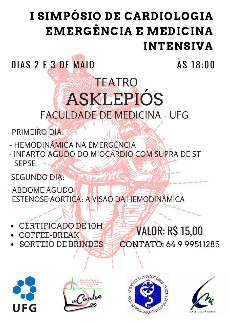 I Simpósio da Liga Acadêmica de Cardiologia da Faculdade de Medicina Evento Local: Teatro Asklepíos da Faculdade de Medicina da UFG Período do Evento : 02 a 03 de Maio 2019 TweetWhatsApp Listar Todas Voltar