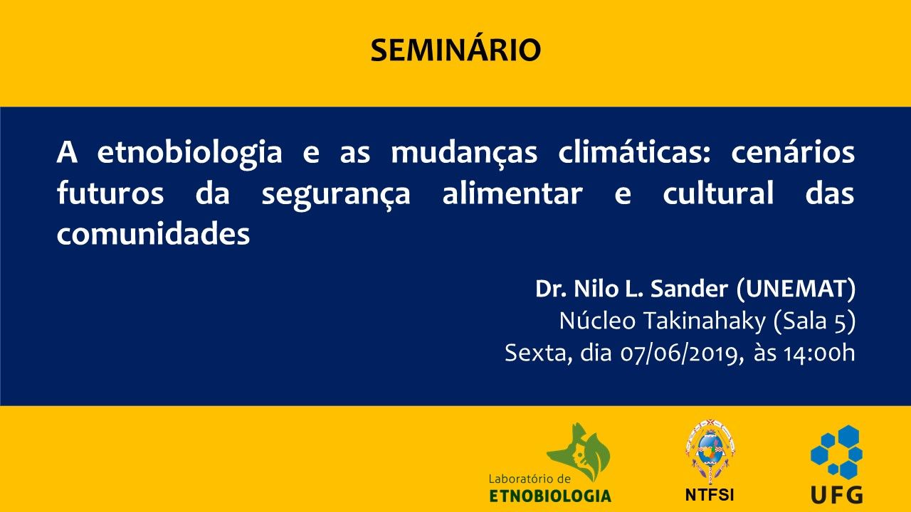O Núcleo Takinahaky realiza no dia 7 de junho, às 14h, o Seminário "A etnobiologia e mudanças climáticas", com o professor Nilo Sander.