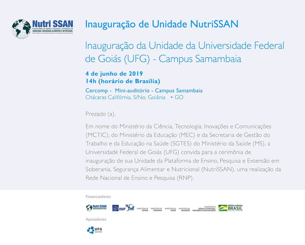 Convite - Centro de Tecnologia em Soberania e Segurança Alimentar e Nutricional é inaugurado na UFG