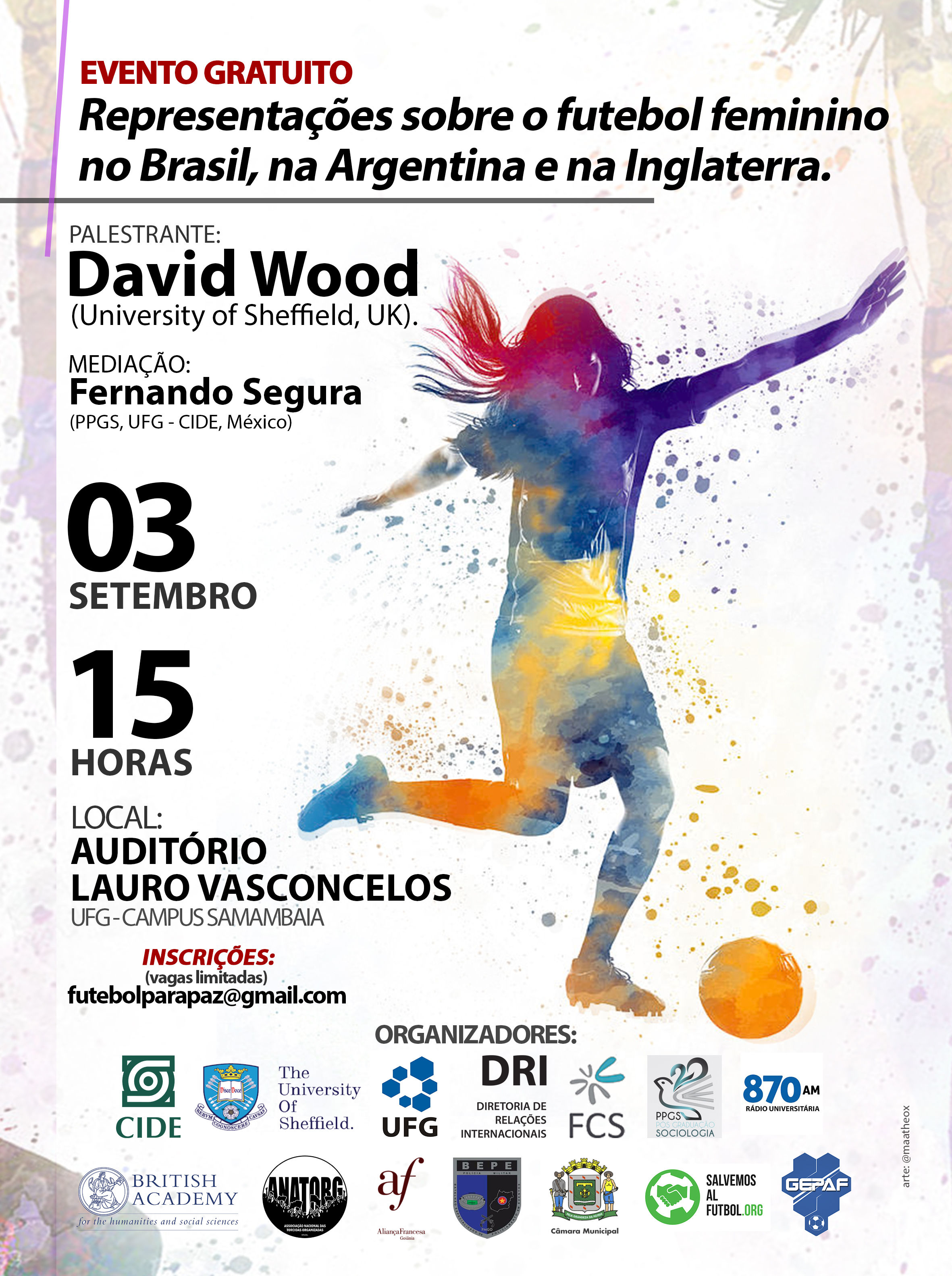 Palestra "Representações sobre o futebol feminino" Evento Local: Auditório Lauro Vasconcellos - Faculdade de História/UFG Fecha del Evento : 03 Setiembre 2019 a las 15:00 TweetWhatsApp Todas las páginas Volver