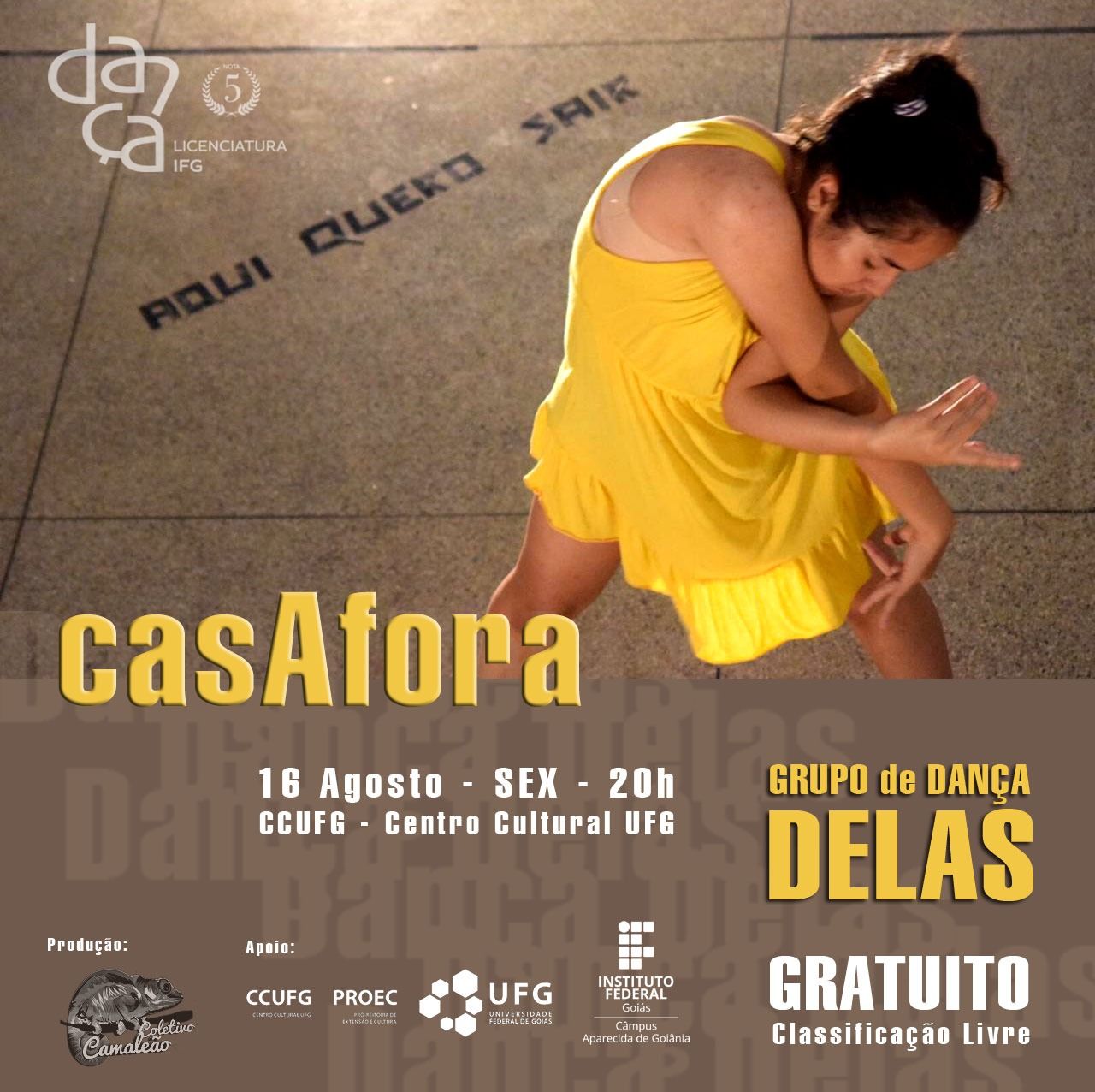 O Centro Cultural UFG recebe, no próximo dia 16 de agosto, às 20h, o espetáculo de dança "casAfora", com direção de Giovana Consorte. O espetáculo, aprovado no Edital PROEC/CCUFG N° 01/2019, abre a Série Artes da Cena do 2° semestre de 2019.