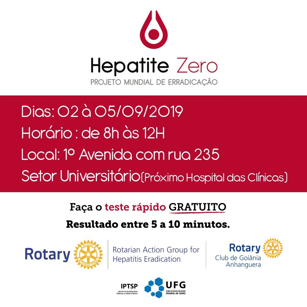 Campanha hepatite zero: faça o teste rápido gratuito na UFG Evento Local: Instituto de Patologia Tropical e Saúde Pública (IPTSP) Periodo del Evento : 02 - 05 Setiembre 2019 TweetWhatsApp Todas las páginas Volver