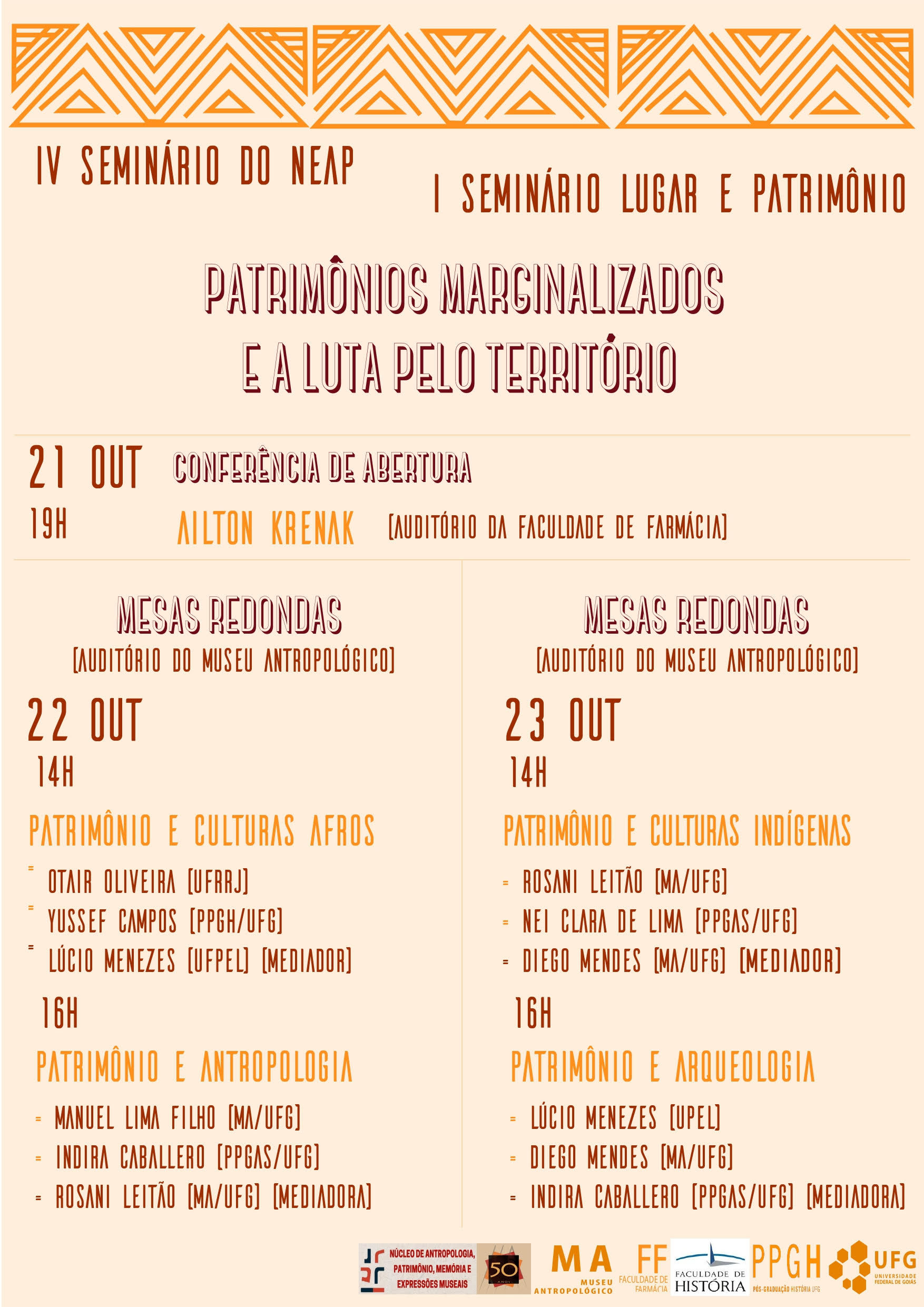Com o tema "Patrimônios marginalizados e a luta pelo território", os seminários serão realizados entre 21 e 23 de outubro no Museu Antropológico.