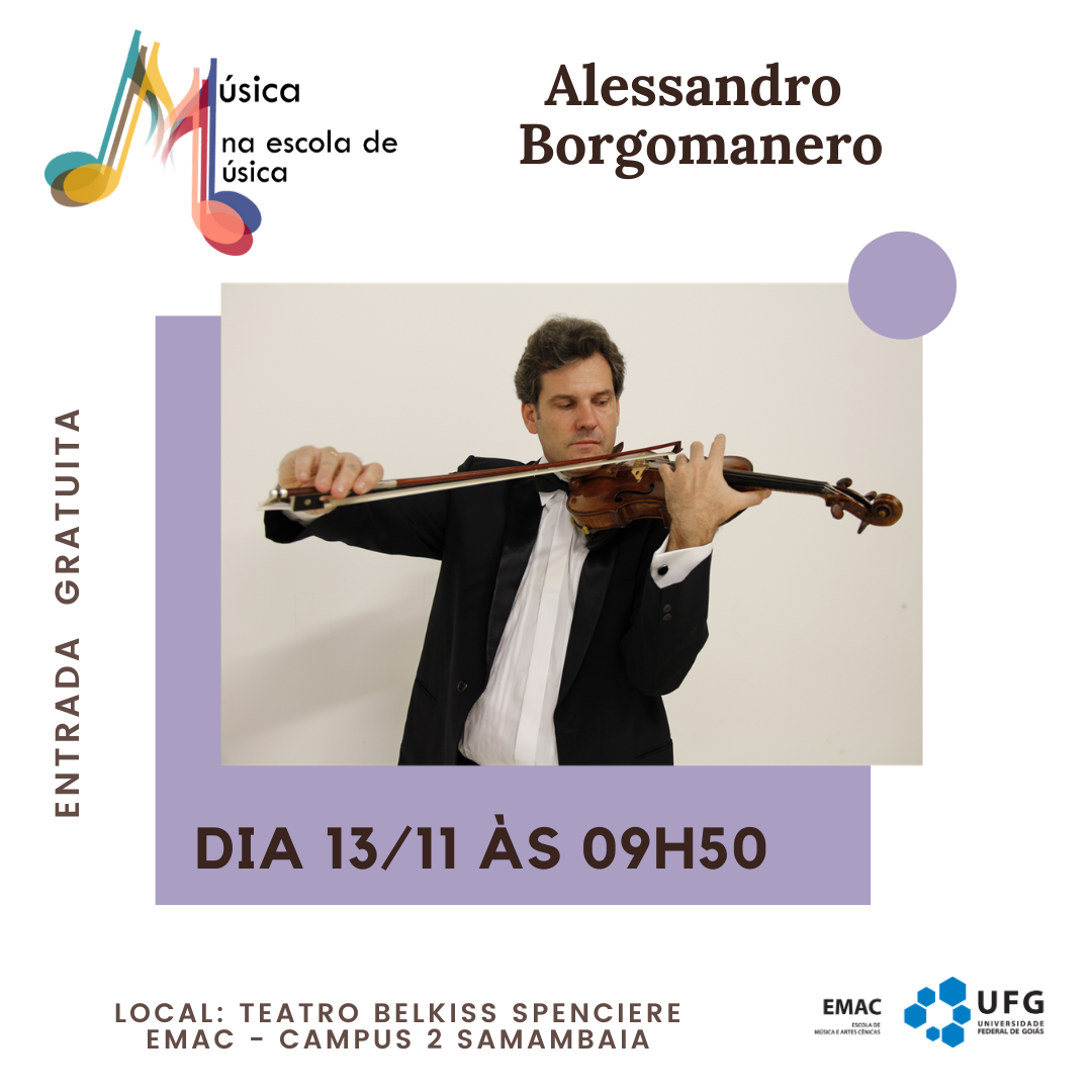 Violino solo com Alessandro Borgomanero 事件 Local: Emac/UFG 活动日期 : 13 , 2019 at 08:50 TweetWhatsApp 全部列出 Back