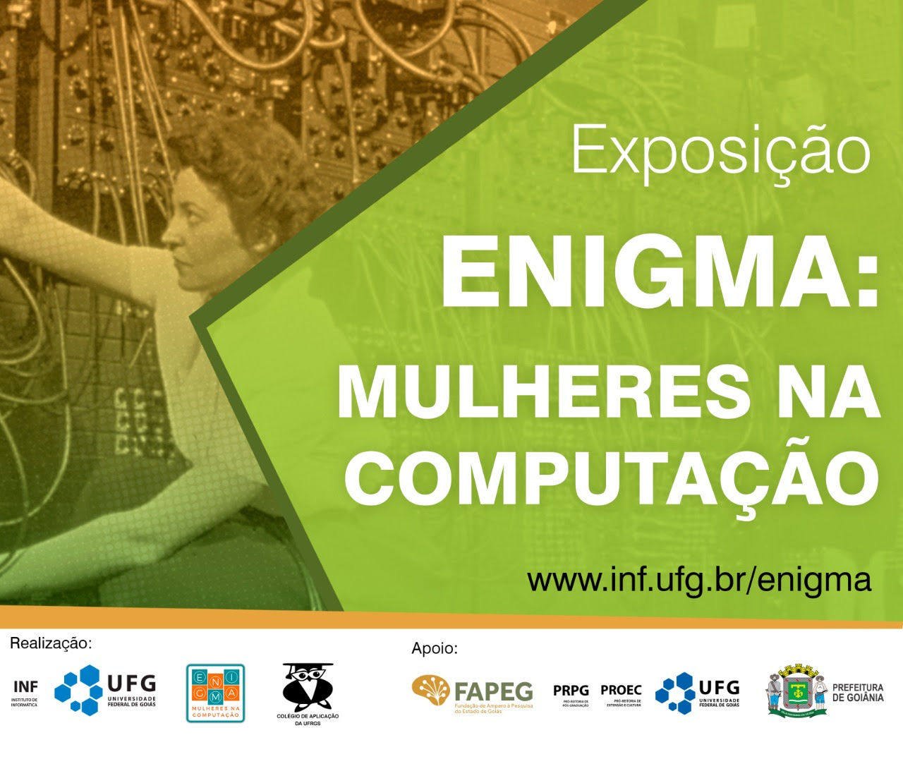 O Instituto de Informática recebe a partir do dia 20 de novembro a exposição “Enigma: Mulheres na Computação”, que será exibida no pátio do INF/UFG até o dia 14 de dezembro. A exposição é uma das ações do projeto de extensão Enigma, vinculado ao Colégio de Aplicação da Universidade Federal do Rio Grande do Sul (UFRGS), integra Arte, Gênero e Computação e tem como objetivo tornar visível o trabalho de mulheres na área da Computação. A mostra conta com peças digitais e físicas, além de oficinas para alunos do ensino fundamental e médio e também para o público em geral.