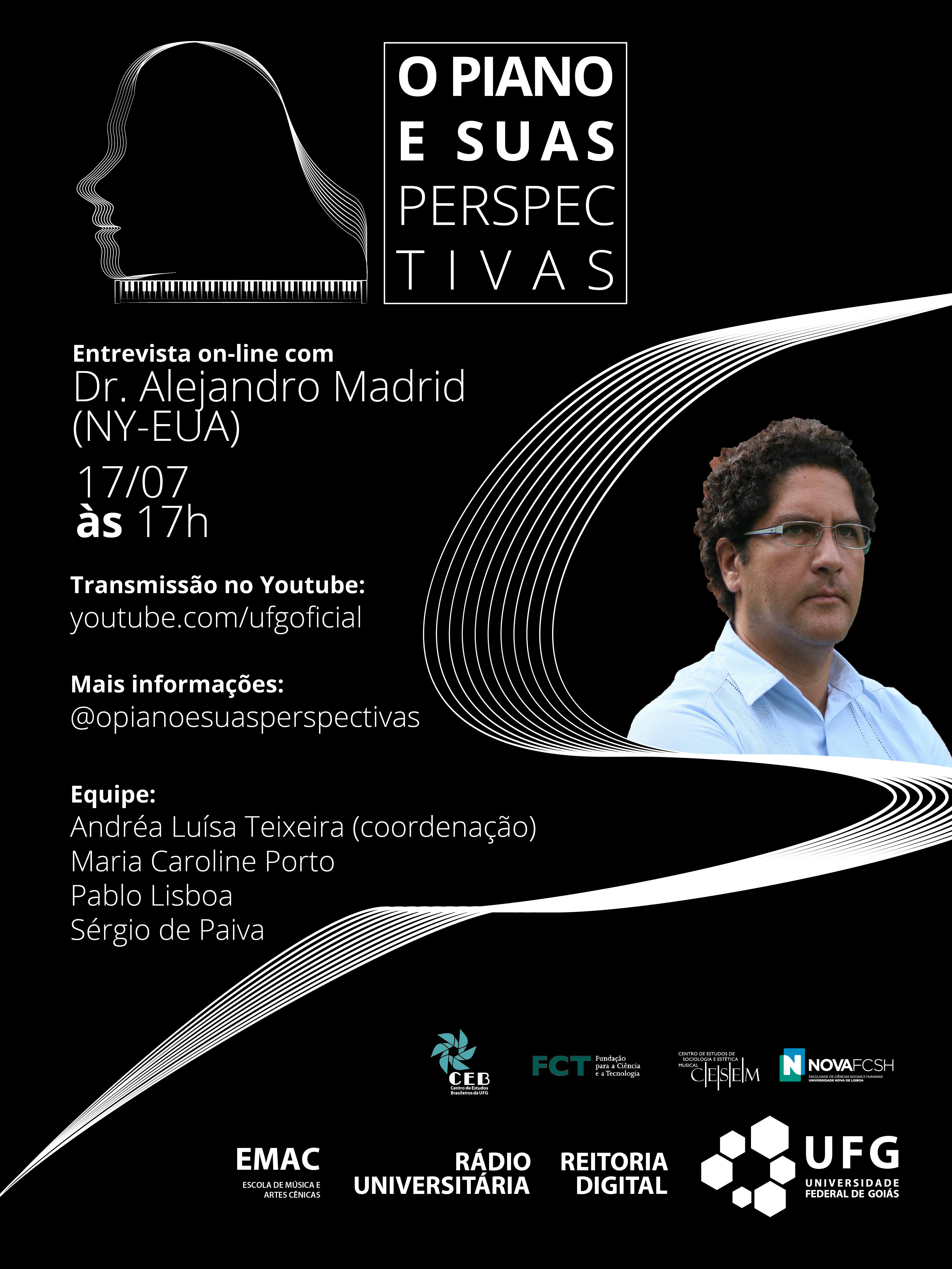 O Piano e suas Perspectivas é um projeto que aborda não apenas o instrumento piano, mas a influência da música e sua história na humanidade. Todas as semanas serão entrevistadas personalidades reconhecidas no Brasil e no exterior, através do YouTube oficial da Universidade Federal de Goiás. Trata-se de um projeto de extensão que foi criado para oferecer aos alunos de música da EMAC-UFG em tempos de aulas não presenciais, um contato diferenciado com artistas e ideias musicais, porém, pela amplitude do tema, atenderá assuntos de interesse da comunidade em geral. A próxima entrevista, no dia 17 de Julho, às 17:00 do Brasil e 21:00 de Portugal,  será com Dr. Alejandro L. Madrid, professor de musicologia e etnomusicologia na Universidade de Cornell (USA). Se formou no doutorado em Musicologia com especialização em estudos culturais comparados.
