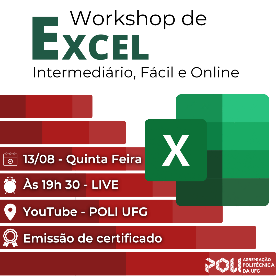 Os trainees da Agremiação Politécnica da UFG tem o prazer em convidar toda sociedade acadêmica para o workshop de Excel aplicado à gestão comercial (nível intermediário) em que abordará tópicos como: