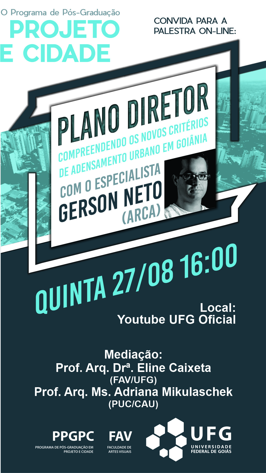 Desde julho do ano passado a Câmara Municipal de Goiânia está apreciando o projeto de lei da revisão do Plano Diretor da Cidade. Um dos temas mais polêmicos do plano e que vem gerando manifestações por parte de moradores de alguns bairros da cidade como o Setor Sul, o Setor Jaó e o Setor Marista, são os critérios de adensamento urbano e as mudanças que esses critérios podem provocar na qualidade de vida de seus habitantes. Visando contribuir para esse debate, o Programa de Pós-Graduação em Projeto e Cidade da Universidade Federal de Goiás convidou Gerson Neto, Especialista em Planejamento Urbano Ambiental e presidente ARCA – Associação para Recuperação e Conservação do Meio Ambiente, ONG que trabalha a mais de 40 anos com o ambiente urbano em Goiânia, para explicar como funcionam os critérios de adensamento propostos pelo ITCO, consultoria contratada pela Câmara Municipal para a revisão do PD, e que foram apresentadas através de emenda parlamentar. Sua fala tem como foco principal, os impactos que esses critérios podem ter nas áreas adensáveis e nas áreas de desaceleração urbana.  Participarão como mediadoras desse debate, as professoras Arq. Dr. Eline Caixeta (UFG) e Arq. Ms. Adriana Mikulaschek (PUC/CAU).