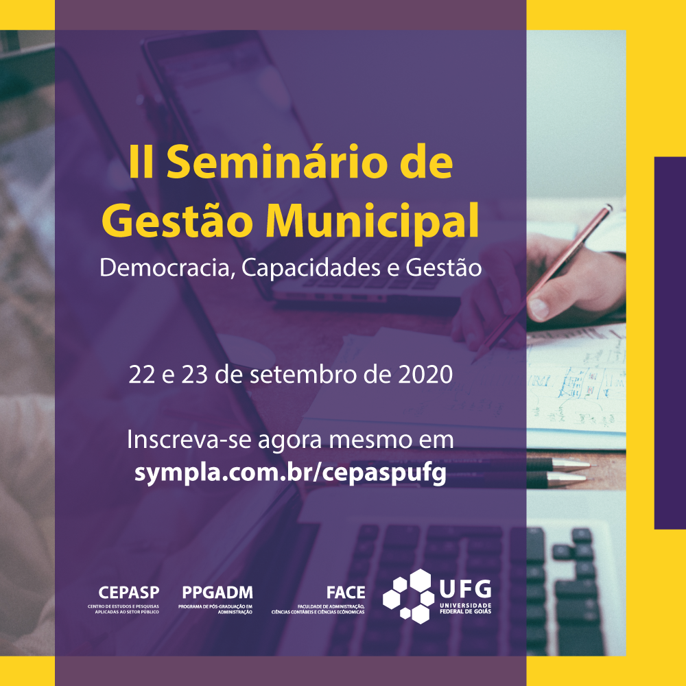 II Seminário de Gestão Municipal: Democracia, Capacidades e Gestão Événement Local: Google Meet (link mediante inscrição prévia) Période de l'événement : 22 a 23 Setembro 2020 Inscreva-se clicando aqui TweetWhatsApp Liste tous Voltar