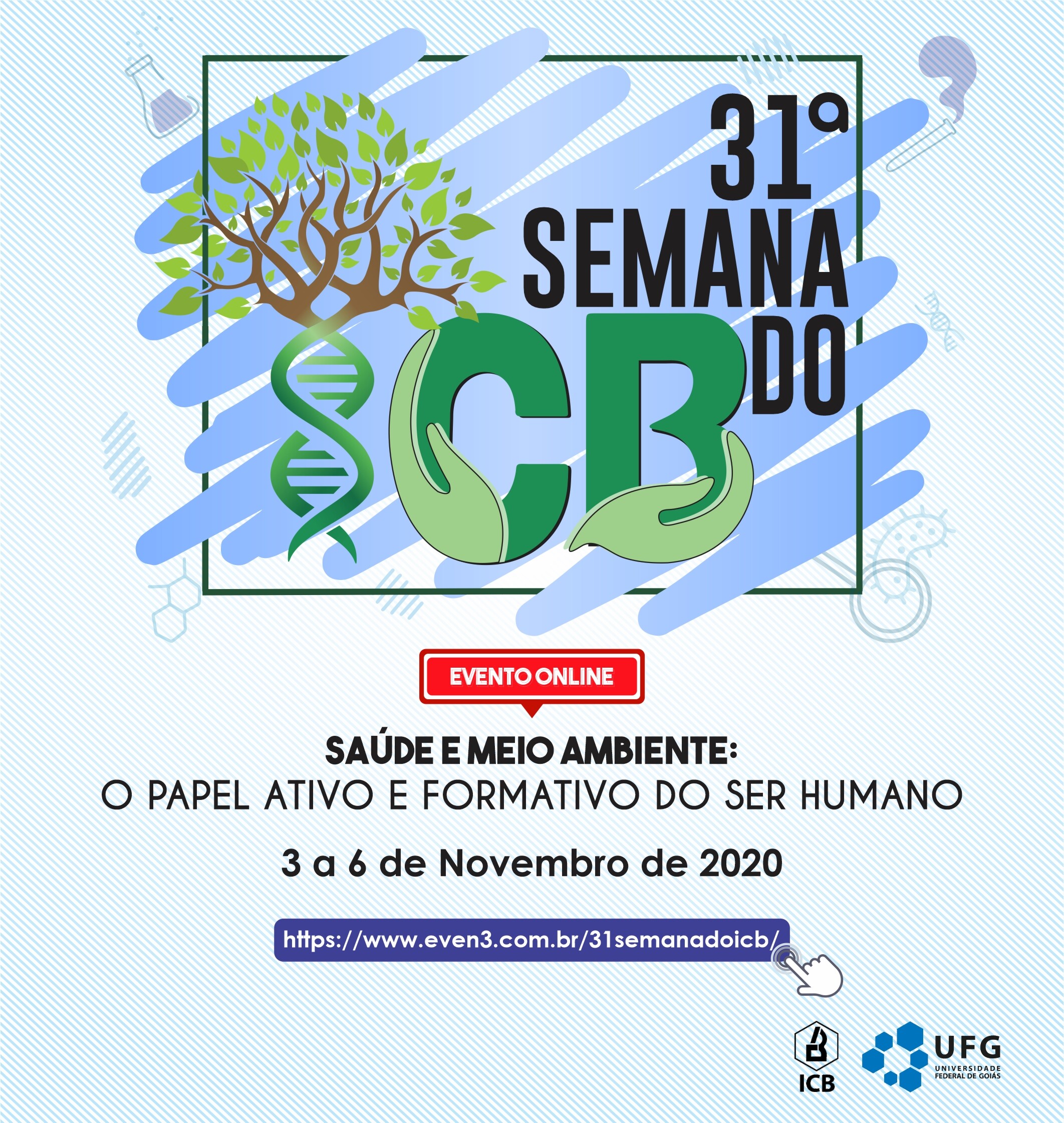 A 31ª Semana do ICB possui o intuito de fazer uma discussão crítica e socialmente referenciada sobre a relação do ser humano com a natureza, no contexto do Brasil e do mundo. O evento será realizado de forma online entre os dias 3 e 6 de novembro.